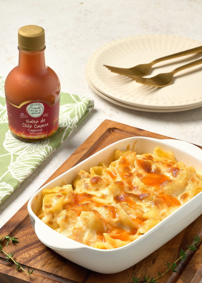 INGREDIENTES 450 g de coditos (macarrones) ½ taza de mantequilla sin sal 1-2 taza de harina todo uso 4 tazas de leche 4 tazas de queso cheddar rallado ½ taza de Salsa de